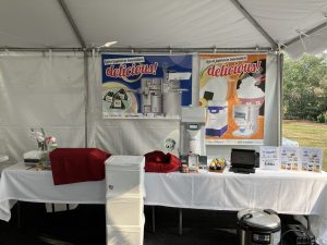 公邸の庭に設けられたテント内にて、小型おにぎりロボット「にぎってPONⅢ」のデモンストレーションを実施しました。