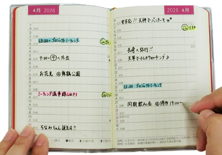 1日1行で簡単に記入できマンスリーも一目瞭然です。